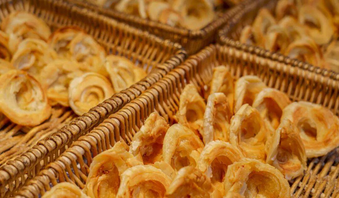 油旋形似螺旋、色泽金黄,外壳咸香酥脆,内里软嫩;酸蘸儿晶莹红亮,酸甜交织,一口下去满是幸福感。