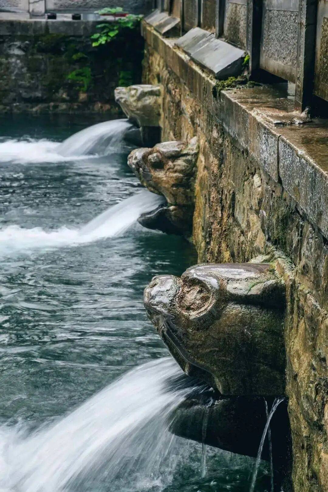 一边是青砖灰瓦的老屋,一边是潺潺向前的流水,临泉人家淘米洗衣,正是“家家泉水,户户垂杨”的意境。