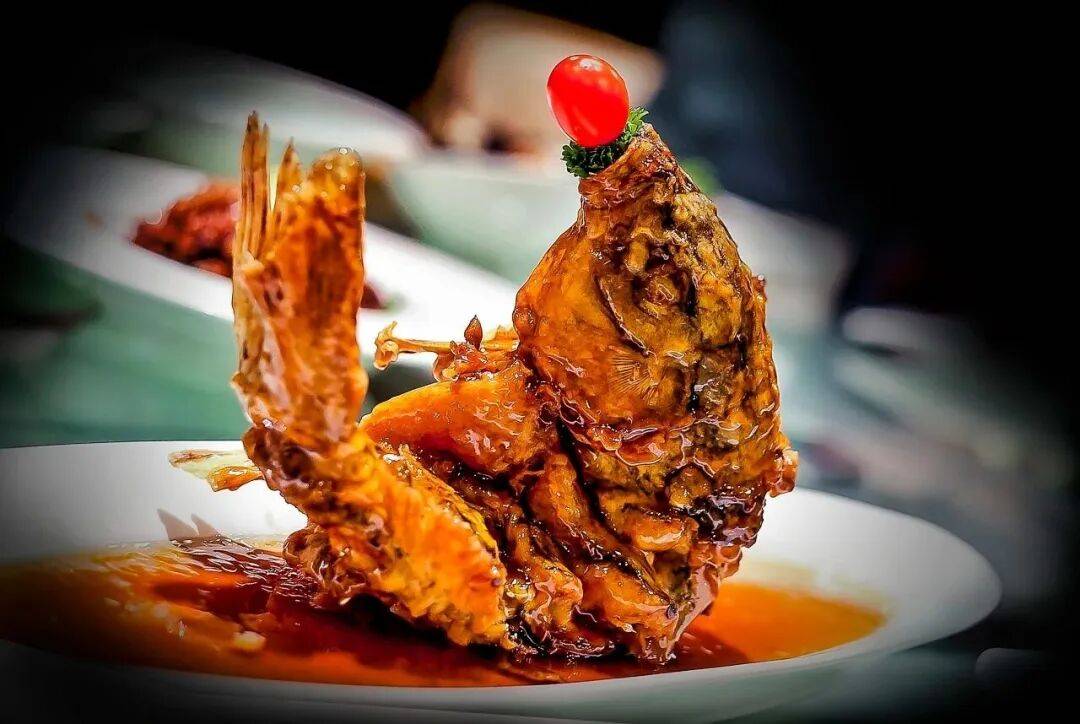 糖醋鲤鱼是宴席上的“颜值担当”,黄河鲤鱼经炸制后昂首翘尾,淋上调制的糖醋汁,外脆里嫩,酸甜适口,还有着“年年有余”的美好寓意。