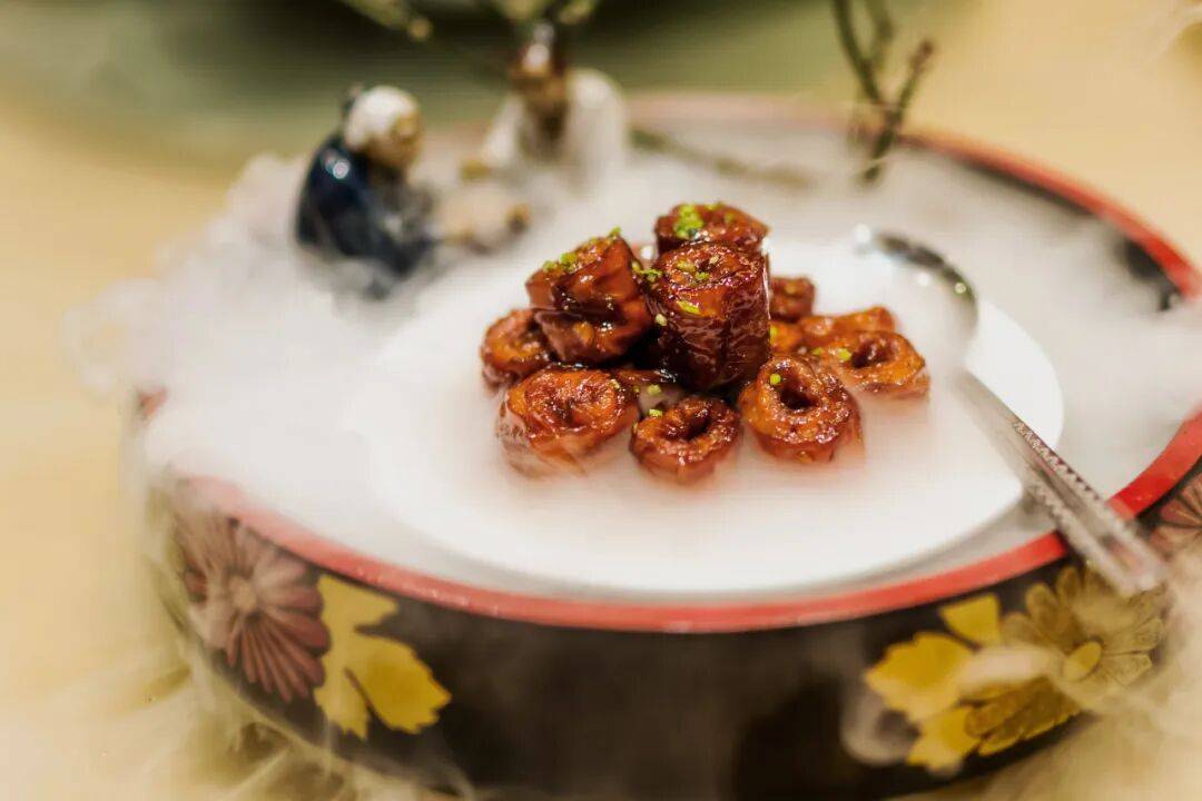 九转大肠堪称功夫菜,经煮、炸、炒多道工序,大肠层层叠叠,肥腴里透着微甜回甘,脂香直往鼻尖钻。