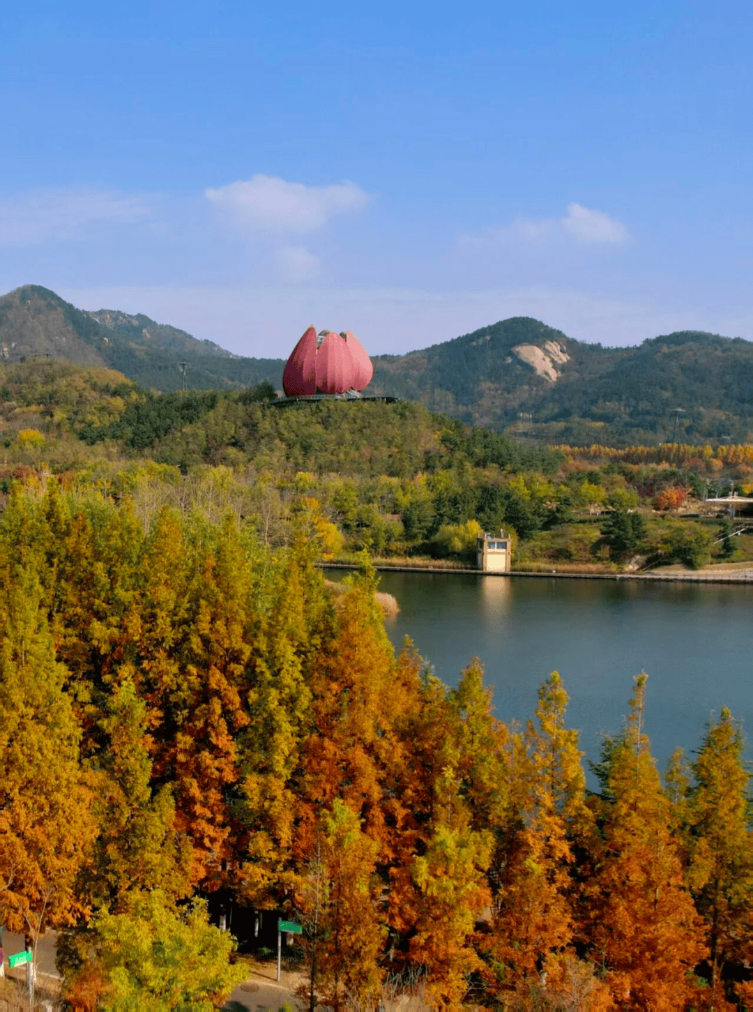 俯瞰日照海滨国家森林公园的这片林海,仿佛置身于一个被打翻的红色系调色盘之中。