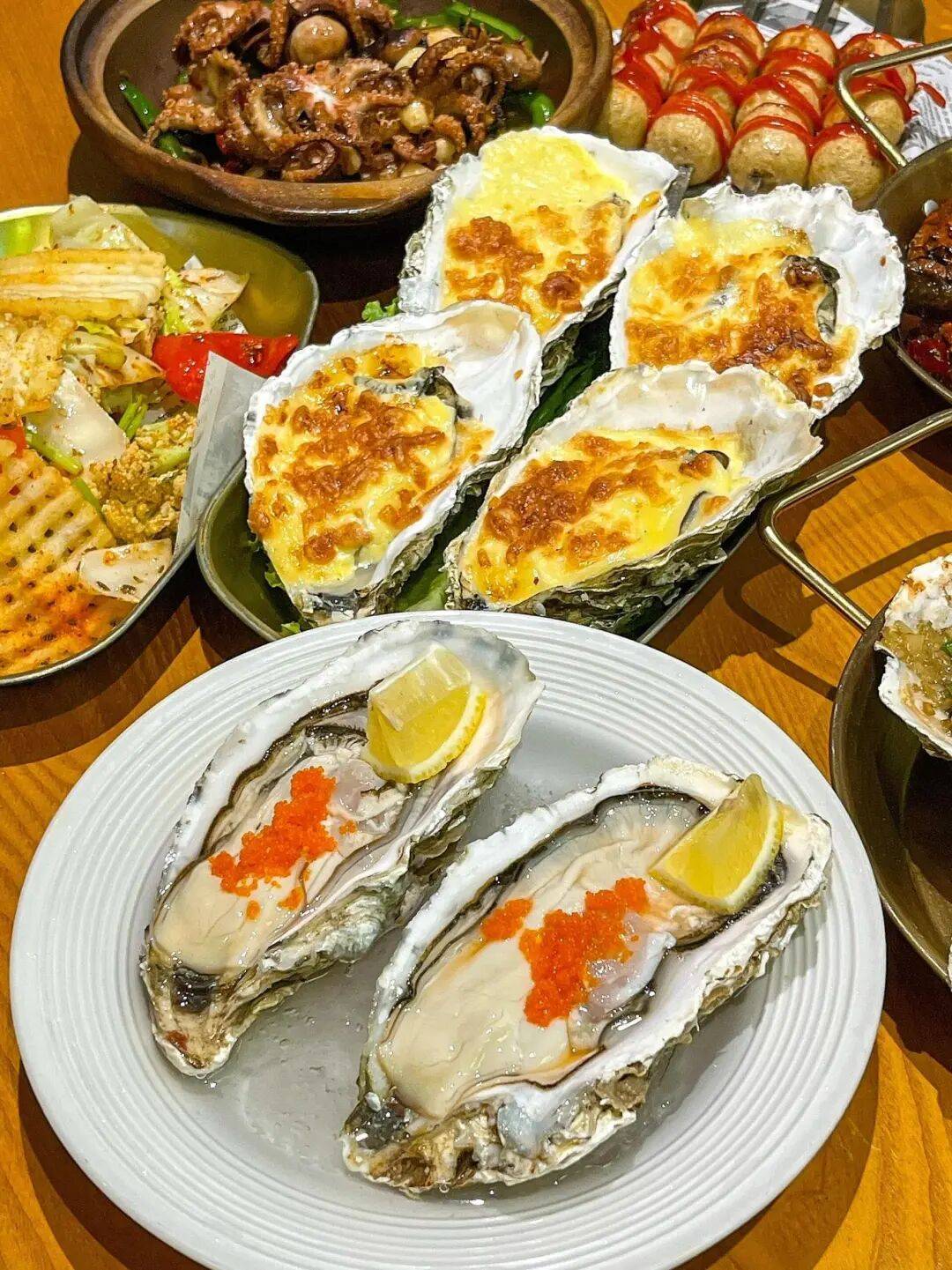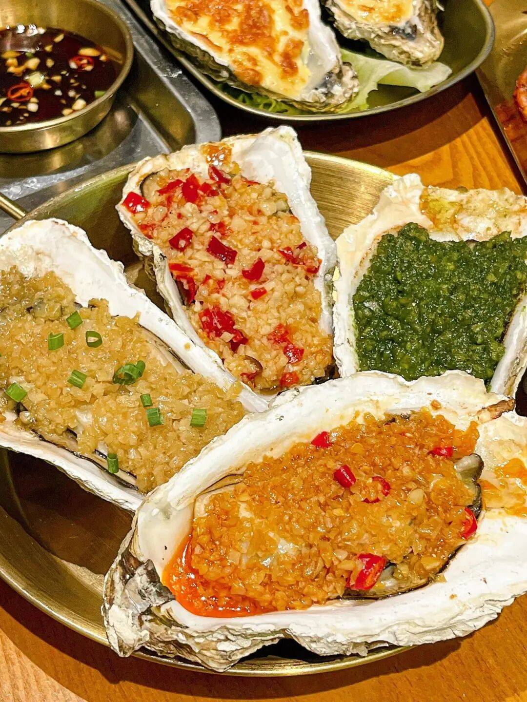 刚烤好的生蚝在炭火上滋滋作响,蒜蓉在滚烫的蚝肉上冒着小泡,特有的香气与海洋的鲜甜交融四散。
