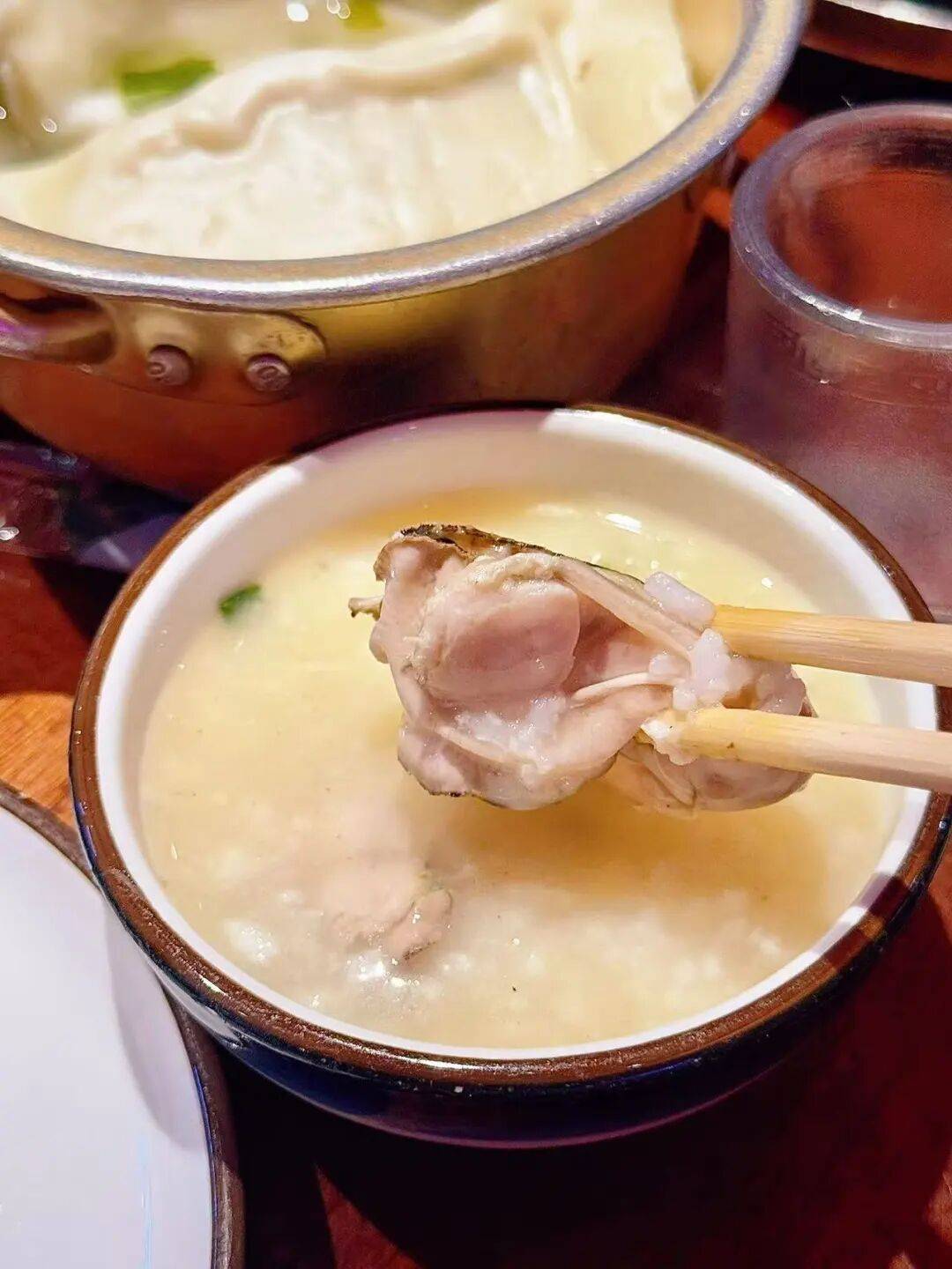 浓稠汤汁漫过米饭,蚝肉圆润丰腴,边缘微微卷起,在浓稠的汤汁中泛着珍珠般的光泽。蚝汁的鲜、米粒的甜、高汤的醇厚在舌尖交织,每一粒米都吸足了海味的精华。