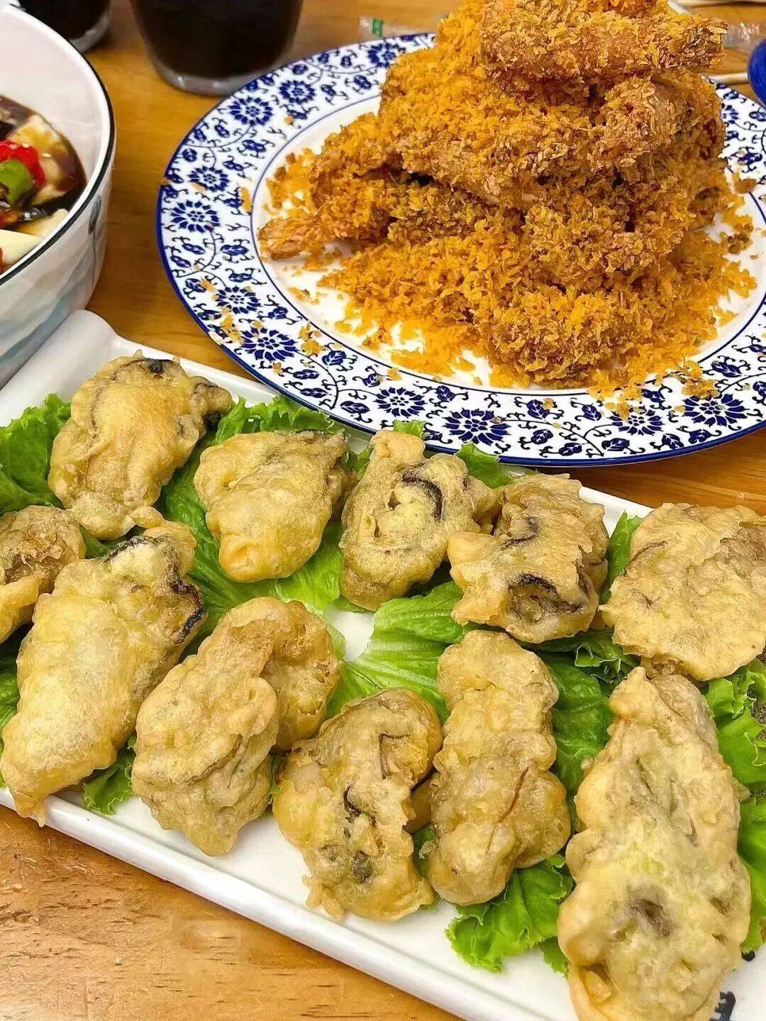 蚝肉依次裹淀粉、蛋液、面包糠,180℃油温炸1-2分钟至金黄,搭配番茄酱或塔塔酱,外壳酥脆,内里嫩滑多汁,大人小朋友都喜爱。