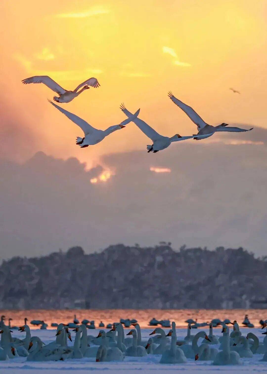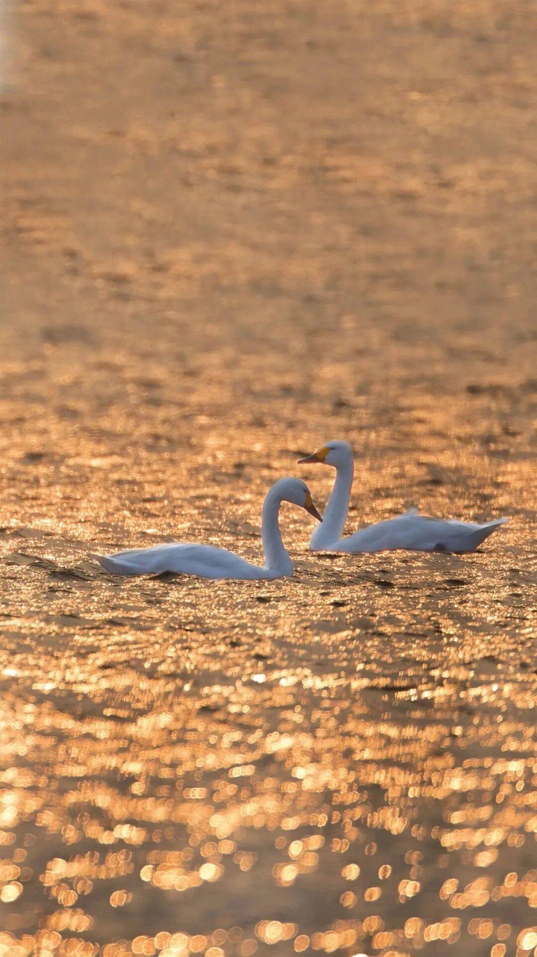当寒流南下,威海荣成的海湾里,迎来了一群尊贵的客人——大天鹅。