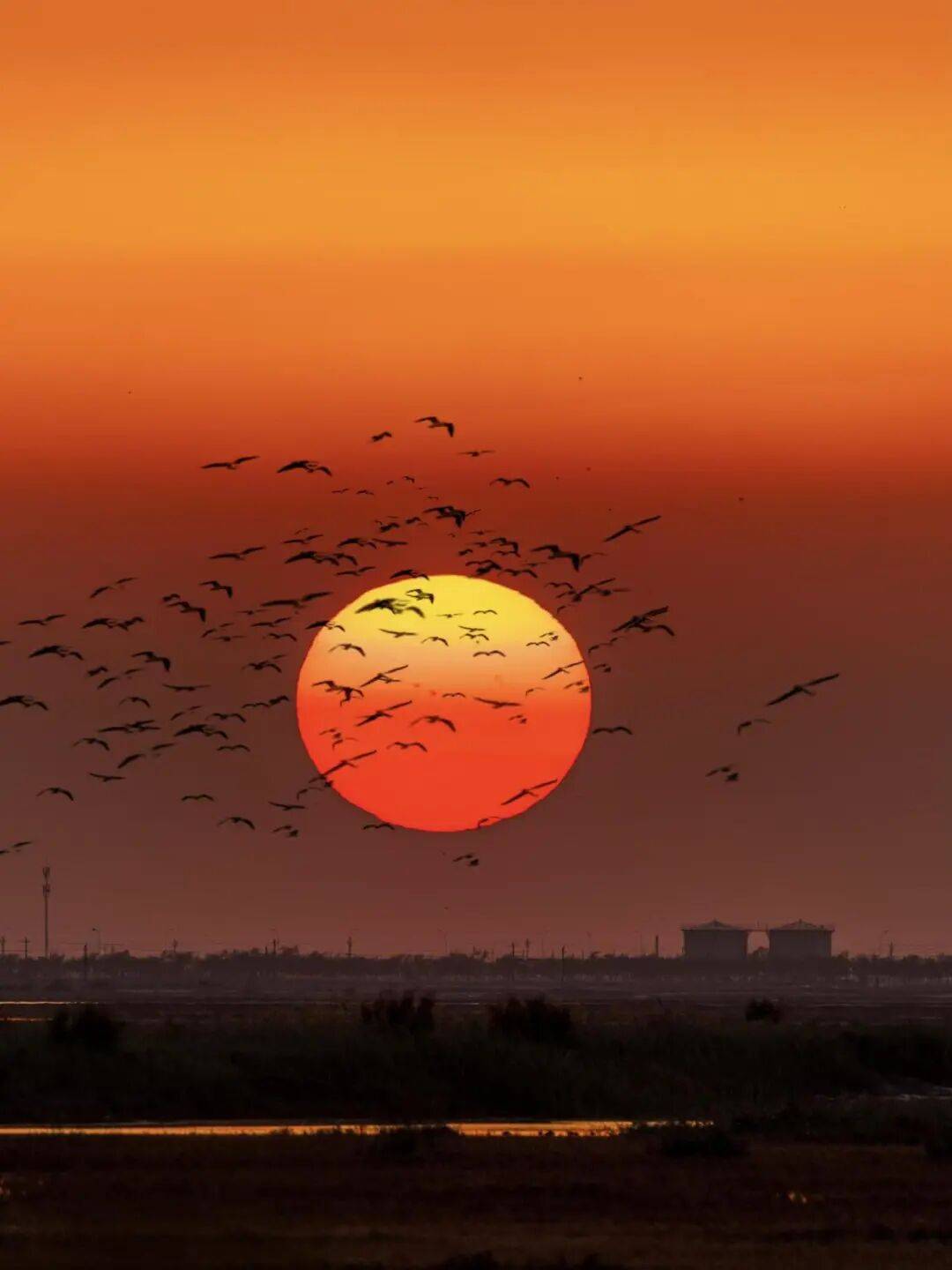 雁阵翱翔、落日夕阳、芦花飞雪……东营的冬季湿地风光绝不会让您失望。