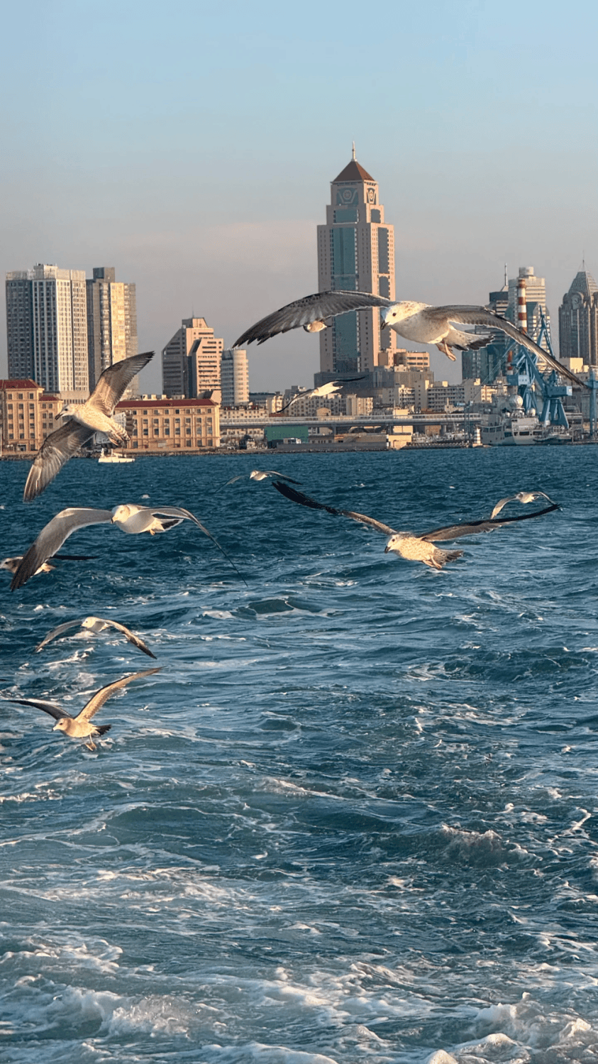 每年10月至次年4月,数万只海鸥从遥远的北方飞来,将这座滨海城市装点成灵动之城。它们穿梭于老城的红瓦绿树之间,翩飞在碧海蓝天之上,为青岛的冬日谱写了一支轻快的都市奏鸣曲。