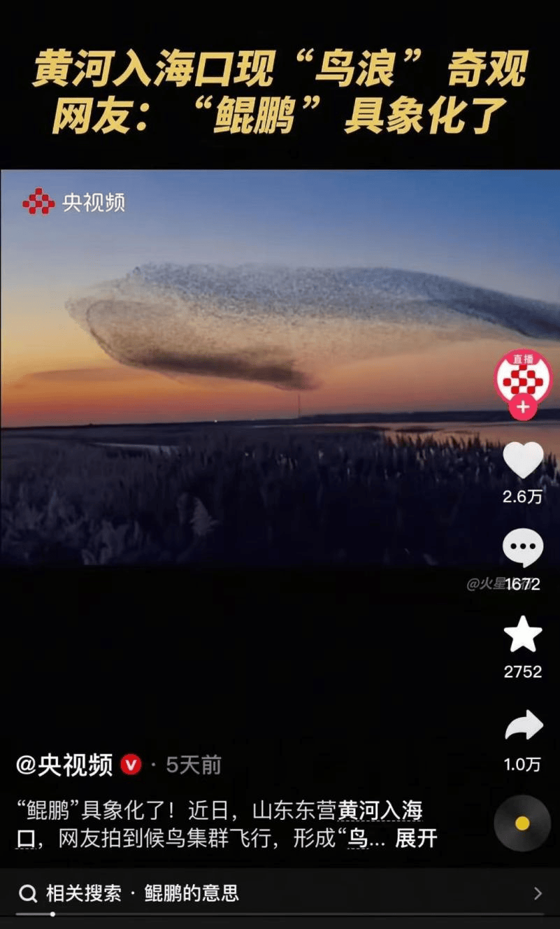 黄河口“万鸟化鲲”的“鸟浪”奇观席卷社交平台