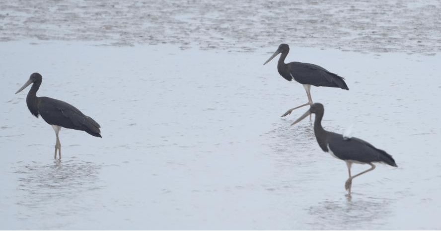 黑鹳:国家一级保护动物,约95-120厘米,体重2-3公斤,羽毛通体乌黑,在阳光下泛着金属般的绿紫色光泽,胸腹部羽毛洁白似雪,鲜红修长的喙和黑色的腿在水光中格外醒目。观测地点集中在沿海观鸟线路、黄河口生态旅游区。