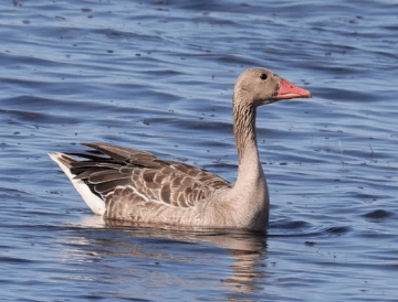 灰雁:体长约70-90厘米。通体灰褐色,颈部有白色横纹,腹部白色,嘴和脚呈粉红色,常集群飞行,飞行时队列整齐。
