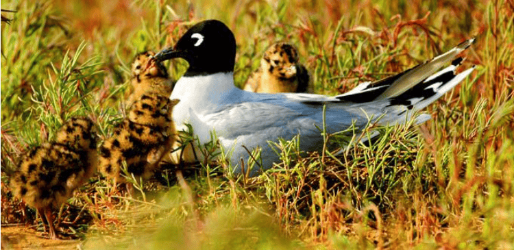 黑嘴鸥:国家一级保护动物、世界易危物种,体长约29-32厘米。夏羽头部黑色,嘴黑色,翼尖具白斑;冬羽头部白色,耳区有黑色斑块,是全球珍稀的小型鸥类,黄河口是其全球第二大繁殖地。