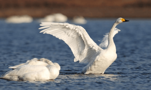 大天鹅:国家二级保护动物,体长约1.5米,全身羽毛洁白发亮,颈部修长呈“S”形,喙端黑色、基部黄色,游泳时体态优雅,飞行时队列整齐(常呈“人”字或“一”字)。冬季(12月-次年2月)集群栖息于东八路观鸟线淡水沼泽、黄河口湿地水湾附近。