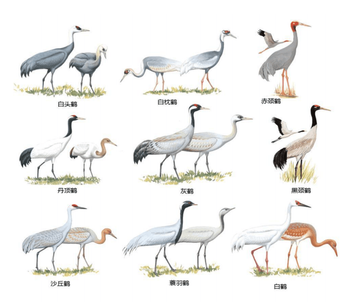 除此之外,鹤科还有沙丘鹤、蓑羽鹤等鸟类。