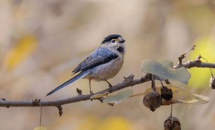 银喉长尾山雀:体长仅10-12厘米,体重7-11克。身体圆滚滚如团子,尾长约等于或大于体长的一半,喉部中央具醒目的银灰色块斑,头顶黑色,体羽以灰、白为主,极具观赏性。全年可见,冬季(11月-次年3月)最为活跃,常结成小群在树枝间跳跃觅食。