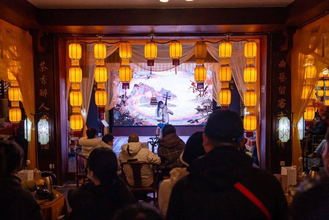 当暮色四合,请步入古色古香的谢裕大茶行。在温暖灯火与氤氲茶香中,非遗演艺《曲艺风华》正悠然开场。婉转的唱腔、生动的演绎,伴着清雅的茶韵,将传统曲艺的韵味淋漓展现。此刻,时光仿佛慢了下来,只剩下一段唱词、一盏清茶,带你沉醉于声音与故事里的旧日风华。