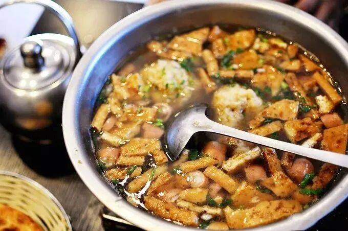 看着锅里的,吃着碗里的。咬一口扎实的肉丸、扯下一段劲道的肥肠、再来口吸饱了汤汁的炸豆腐,一股暖意从胃到心。要是趁热打铁,再来一口熬煮已久的高汤。“呼”,真的是通体舒畅。