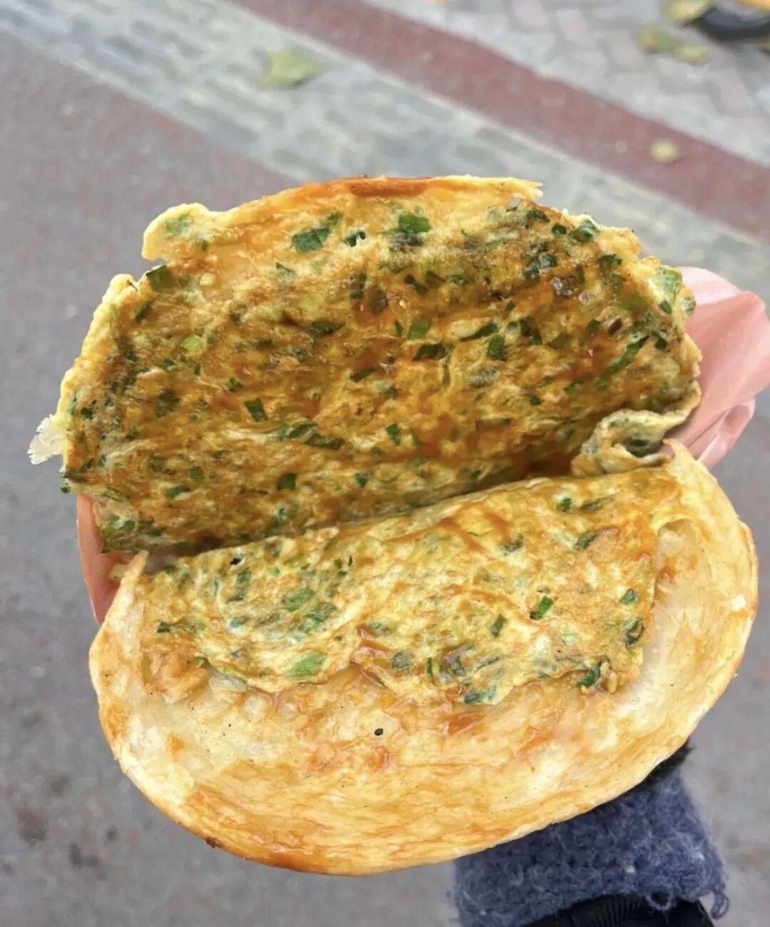 街头惊喜 鸡蛋火烧:铁板上煎得金黄的鸡蛋,夹进酥脆的火烧里,刷上秘制酱料,加份辣条更是灵魂暴击!咬下去的“咔嚓”声,是属于曹县的街头治愈感。